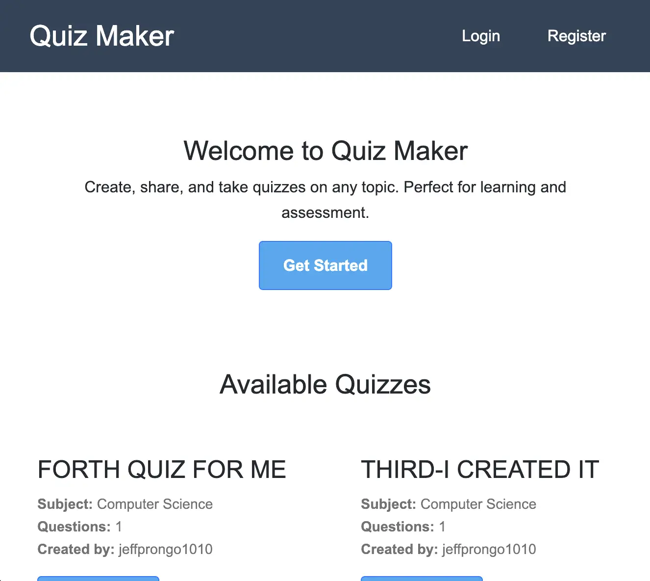 Quiz Maker is a web-based tool built in Cursor.app that lets users register as teachers or students to design, share, and take quizzes on any topic via an intuitive interface featuring community-sourced questions and personal progress analytics warriorbug.com/qm. Leveraging Cursor.app’s AI code editor, I rapidly prototyped the entire flow—from user authentication to quiz listing and detailed performance tracking—using natural language prompts and smart code generation to accelerate development.